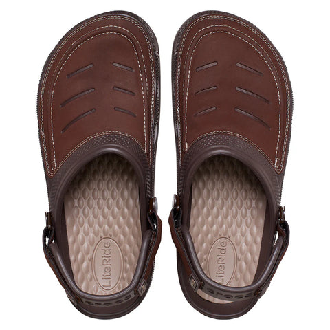 Los refuerzos de cuero genuino en la parte superior y las correas ajustables en el talón, añaden una dosis de fuerza a estos Clogs. Cuenta con un sistema de cierre de velcro que también gira hacia adelante. Sus suelas y plantillas de espuma Croslite ™ pueden soportar los elementos al aire libre, mientras brindan una verdadera comodidad alrededor de una fogata, en el camino o en casa.