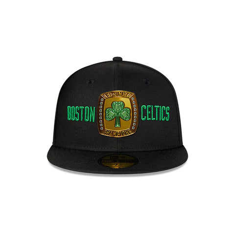 Esta gorra plana New Era 59FIFTY de Boston Celtics de la colección NBA Boston Celtics 18x NBA Champions presenta un diseño inspirado en el anillo de campeones junto con el nombre de los Celtics bordado en los paneles frontales, un parche conmemorativo del lado derecho y el flag de New Era bordado del lado izquierdo.